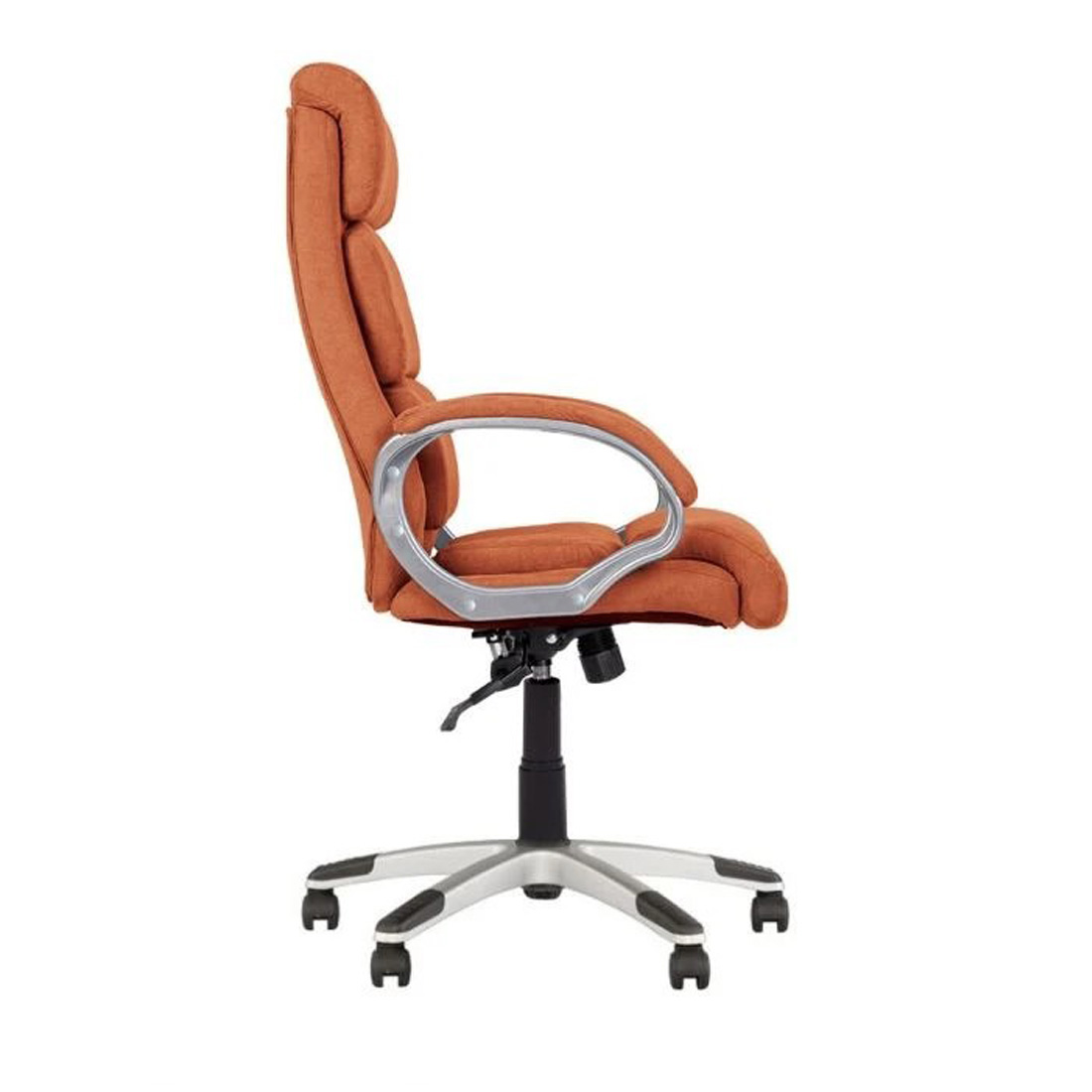 Пластиковые подлокотники с обитыми мягкими накладками, регулируемая высота сидения, механизм качания Тilt (свободное качание, регулировка силы отклонения в зависимости от веса пользователя, фиксация спинки в вертикальном положении).