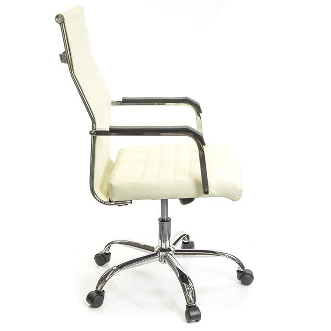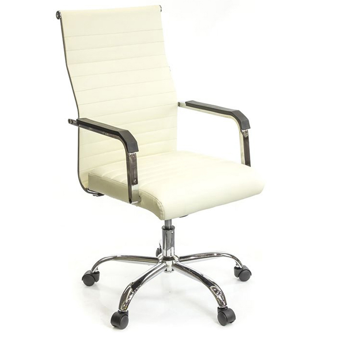 Крестовина изготовлена из металла. Такая крестовина очень прочная и может выдерживать нагрузку до 150 кг. Блестящее хромированное покрытие металла не только красивое, но и очень прочное. Оно не боится интенсивных нагрузок и не подвержено царапанию. Ролики обеспечат креслу необходимую мобильность. Для данной модели отлично подойдут ролики с хромированными накладками, которые по желанию можно заказать дополнительно.