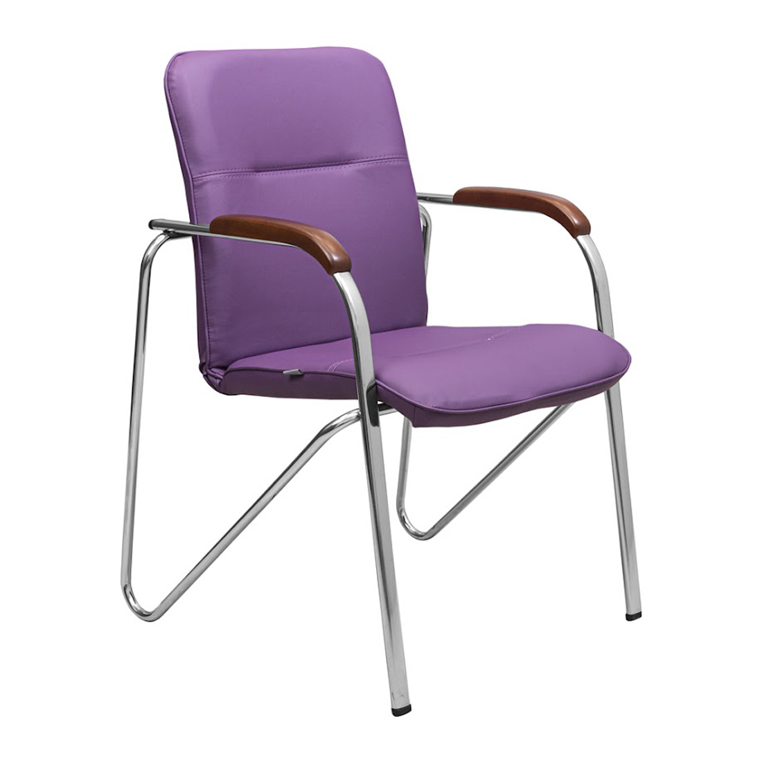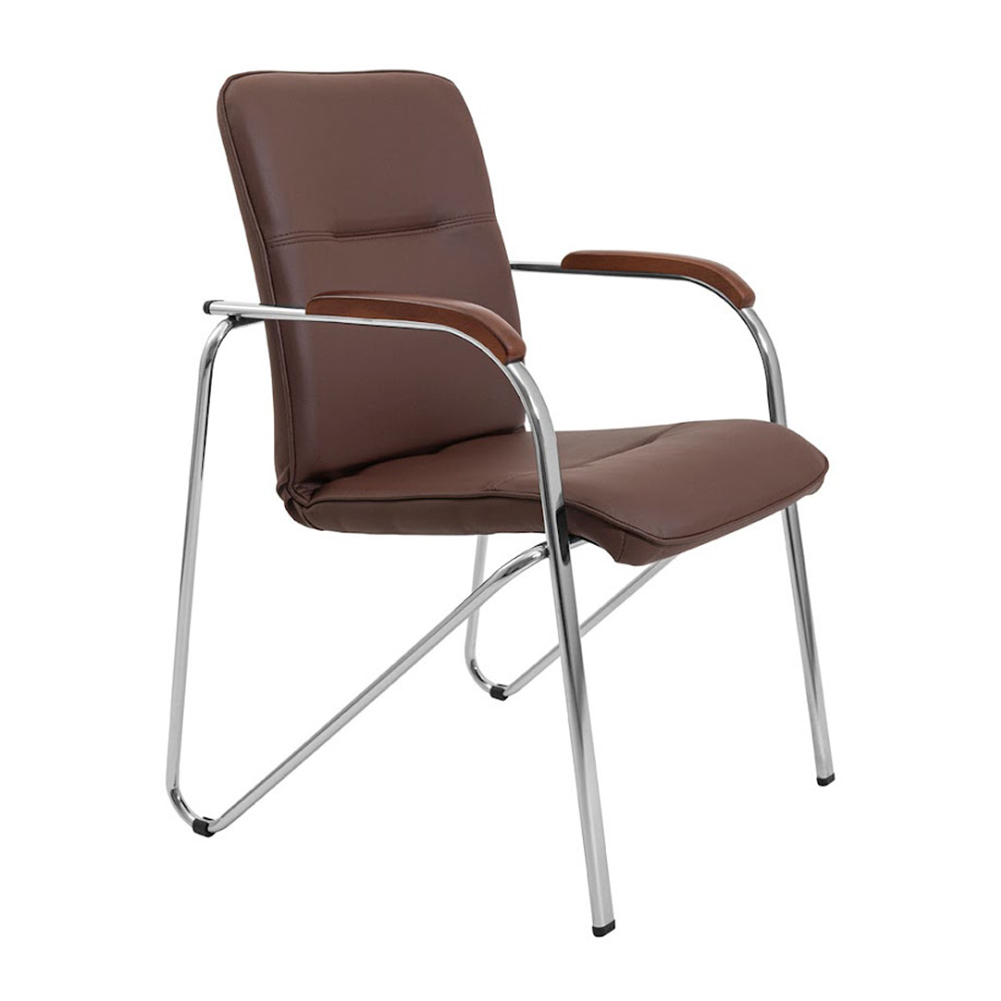 Кресло Самба CF - это удобное кресло с мягкими спинкой и сиденьем, хромированные ножки которого плавно переходят в подлокотники, на которых имеются деревянные накладки с ясеня, цвет "орех".