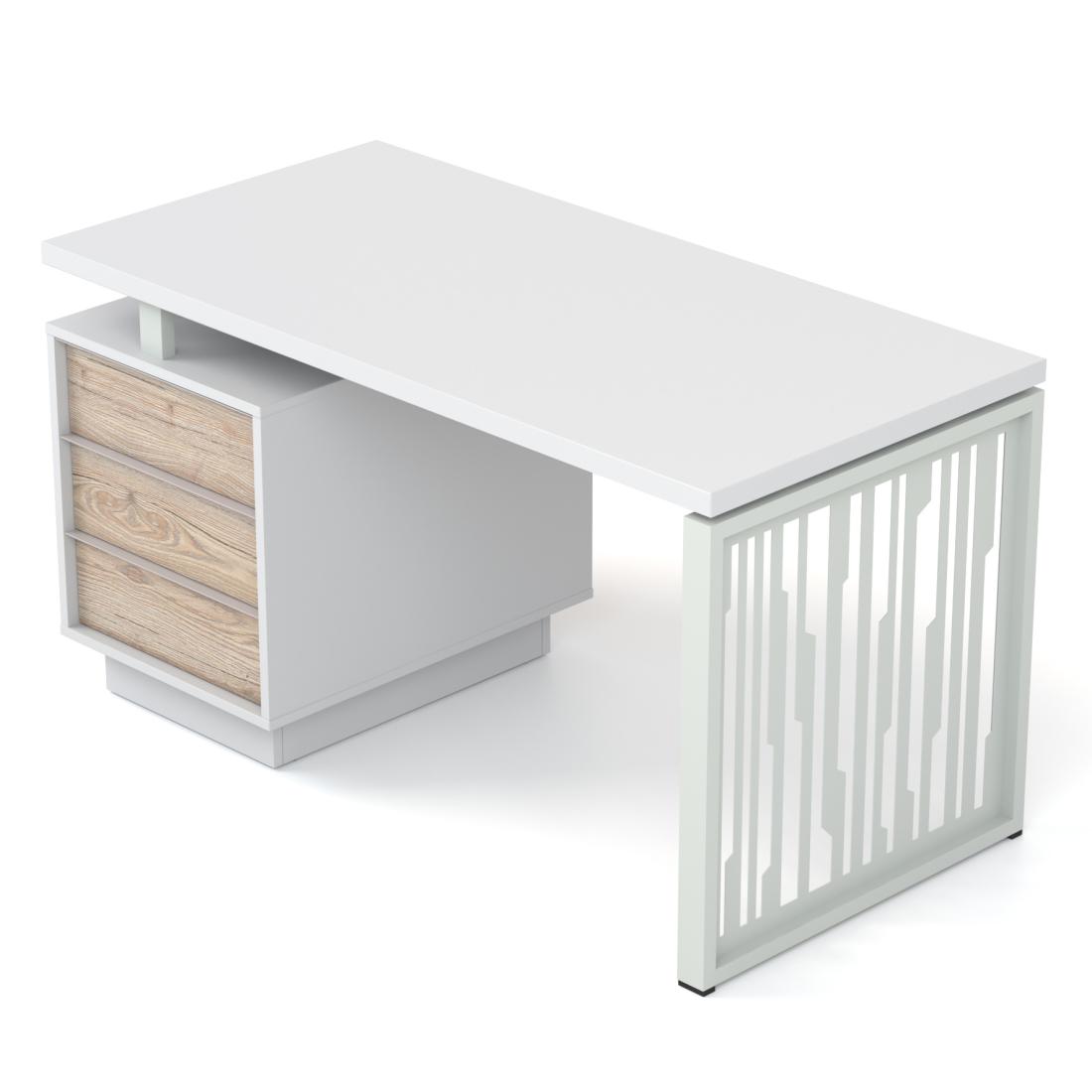 Завдяки особливій конструкції каркасу, складається враження, ніби стільниця "парить" над опорами. За вашим бажанням стільницю можна виготовити товщиною 18 або 36 мм. А опори можуть мати різні кольори (графітовий, сірий або білий).