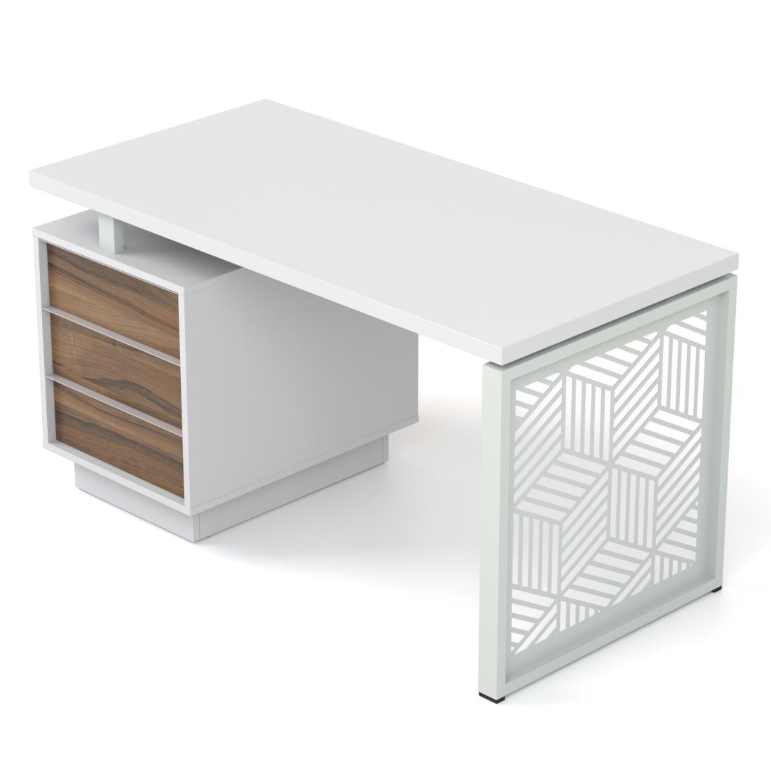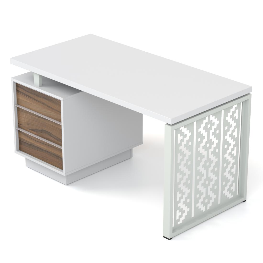 "Промо Етно" від Salita™ — це нова концепція офісних столів на базі нашої серії "Промо". Столи даної серії мають унікальні опори з елементами українського орнаменту. Дані столи нададуть в дизайн вашого кабінету винятковий стиль та оригінальність. Міцний металевий каркас столів гармонійно поєднується з дерев'яною стільницею теплих тонів.