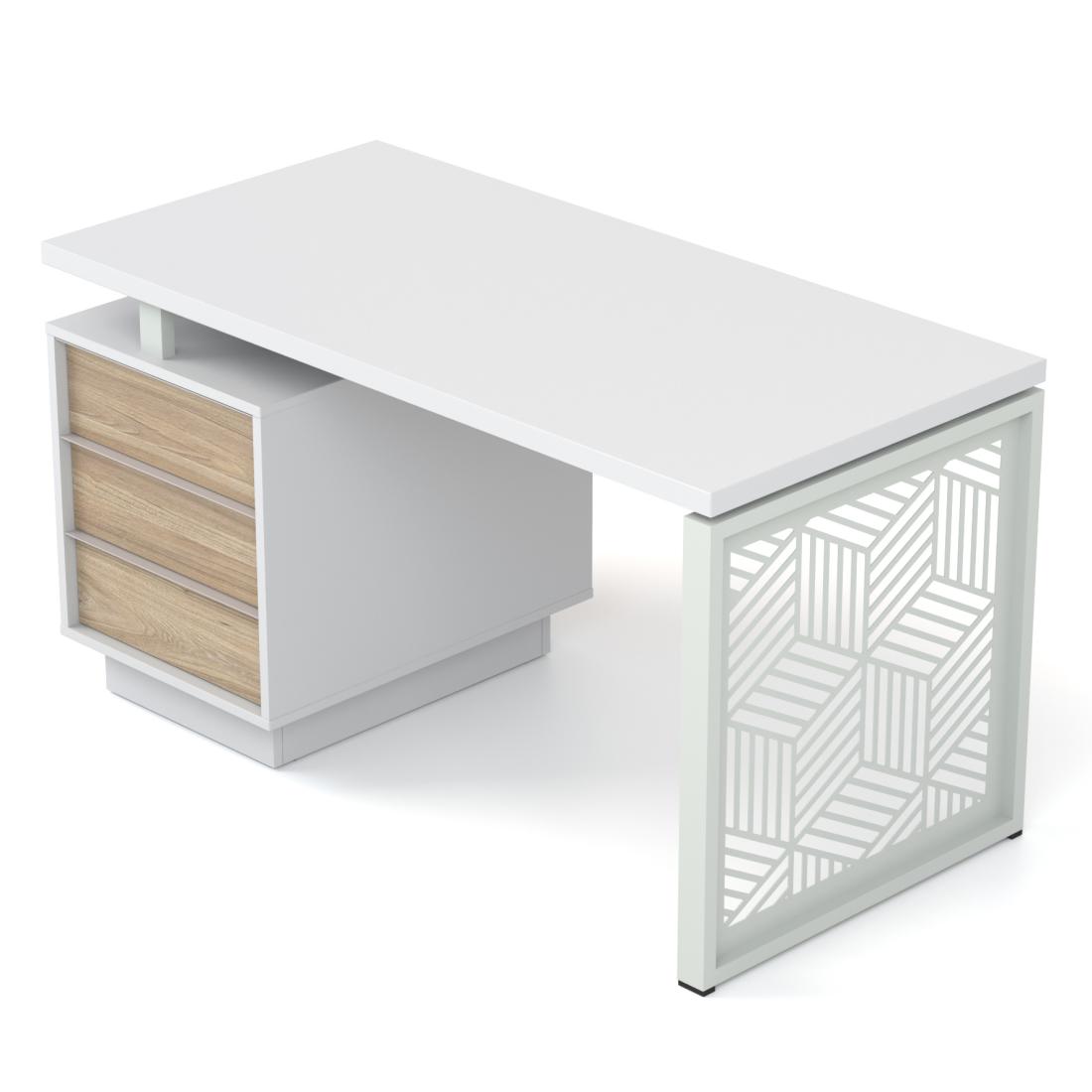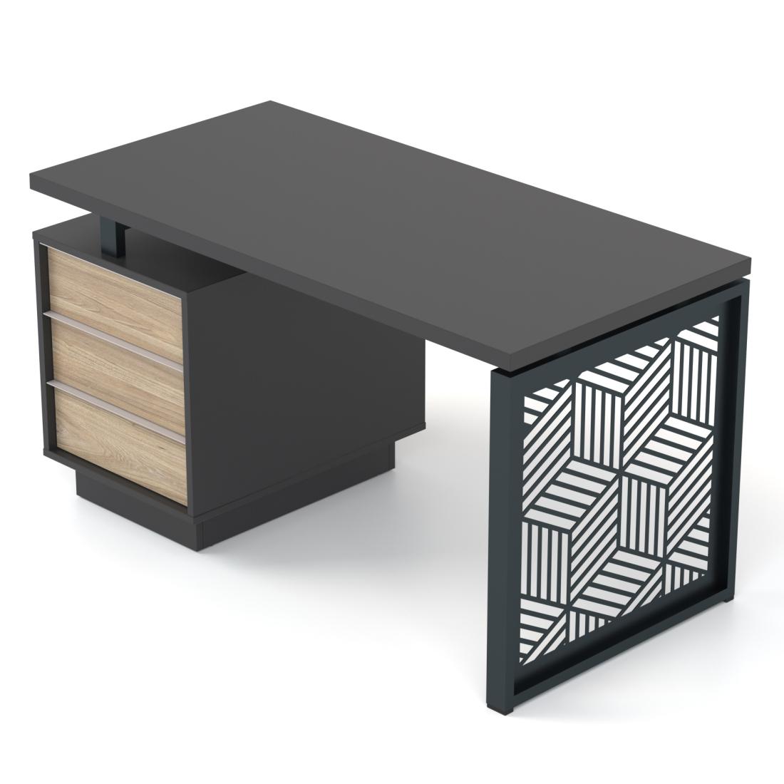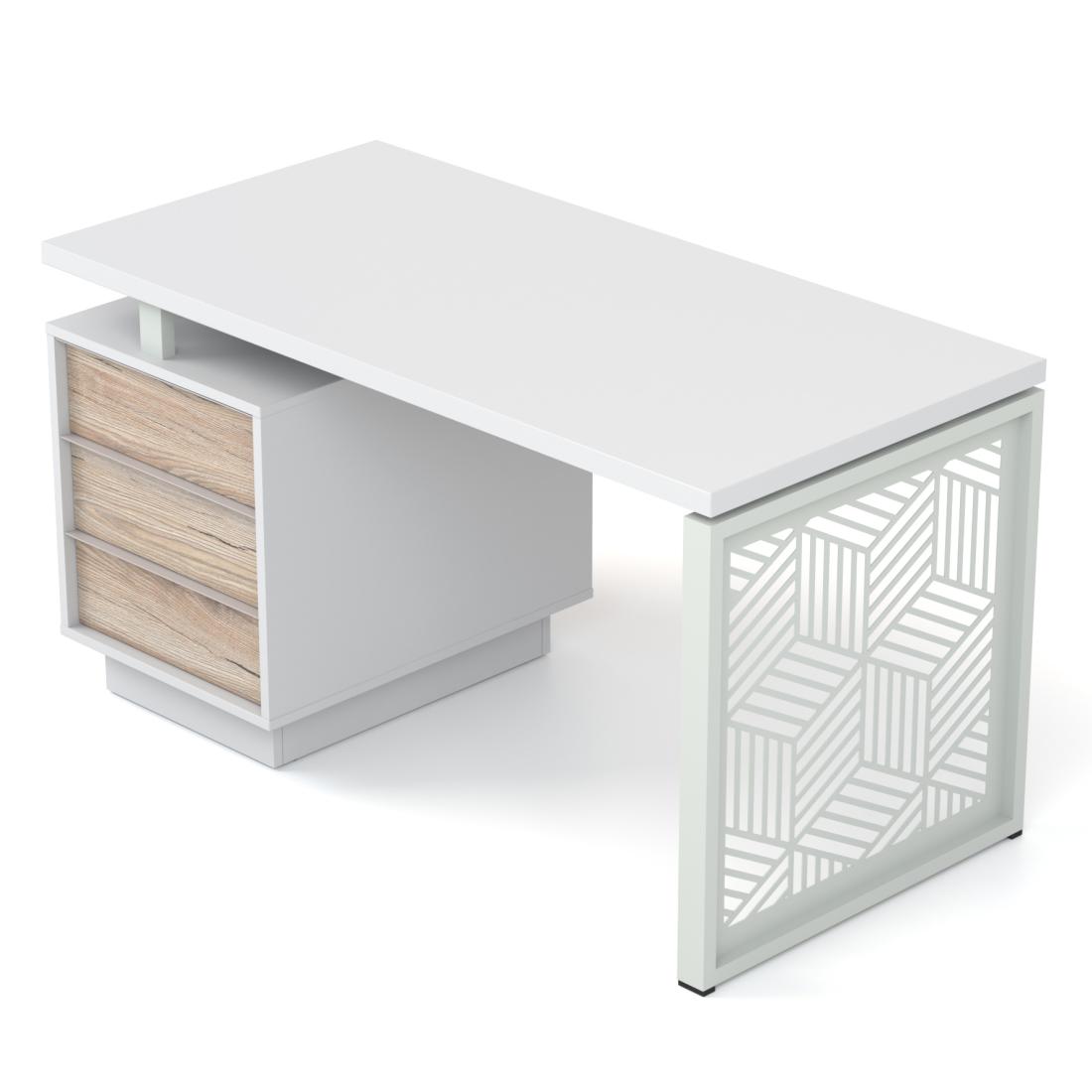 "Промо Етно" від Salita™ — це нова концепція офісних столів на базі нашої серії "Промо". Столи даної серії мають унікальні опори з елементами українського орнаменту. Дані столи нададуть в дизайн вашого кабінету винятковий стиль та оригінальність. Міцний металевий каркас столів гармонійно поєднується з дерев'яною стільницею теплих тонів.