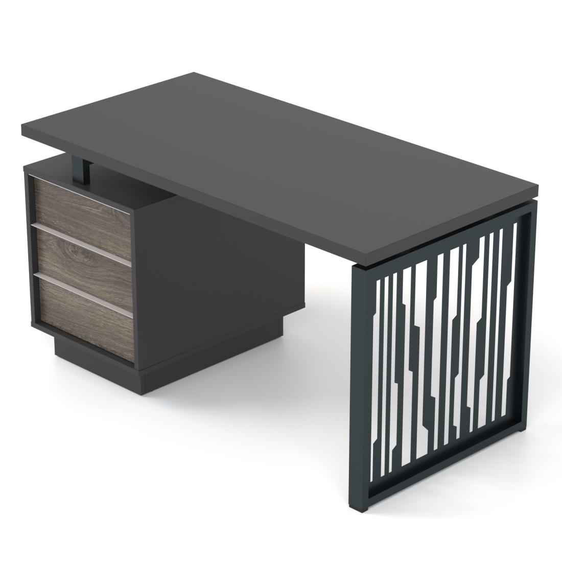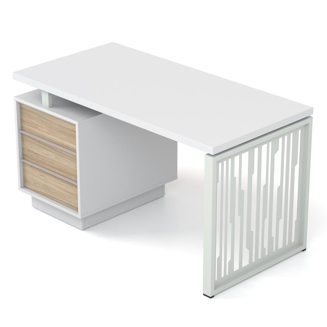 Завдяки особливій конструкції каркасу, складається враження, ніби стільниця "парить" над опорами. За вашим бажанням стільницю можна виготовити товщиною 18 або 36 мм. А опори можуть мати різні кольори (графітовий, сірий або білий).