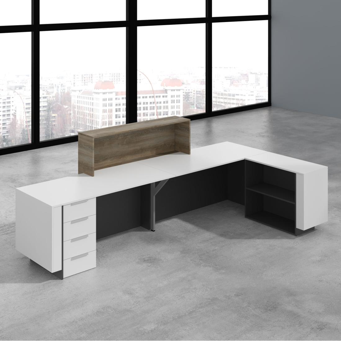 SIMPLE reception идеально сочетается с серией мебели для персонала PROMO, позволяя тем самым обустроить офис в едином стиле и цветовых решениях.