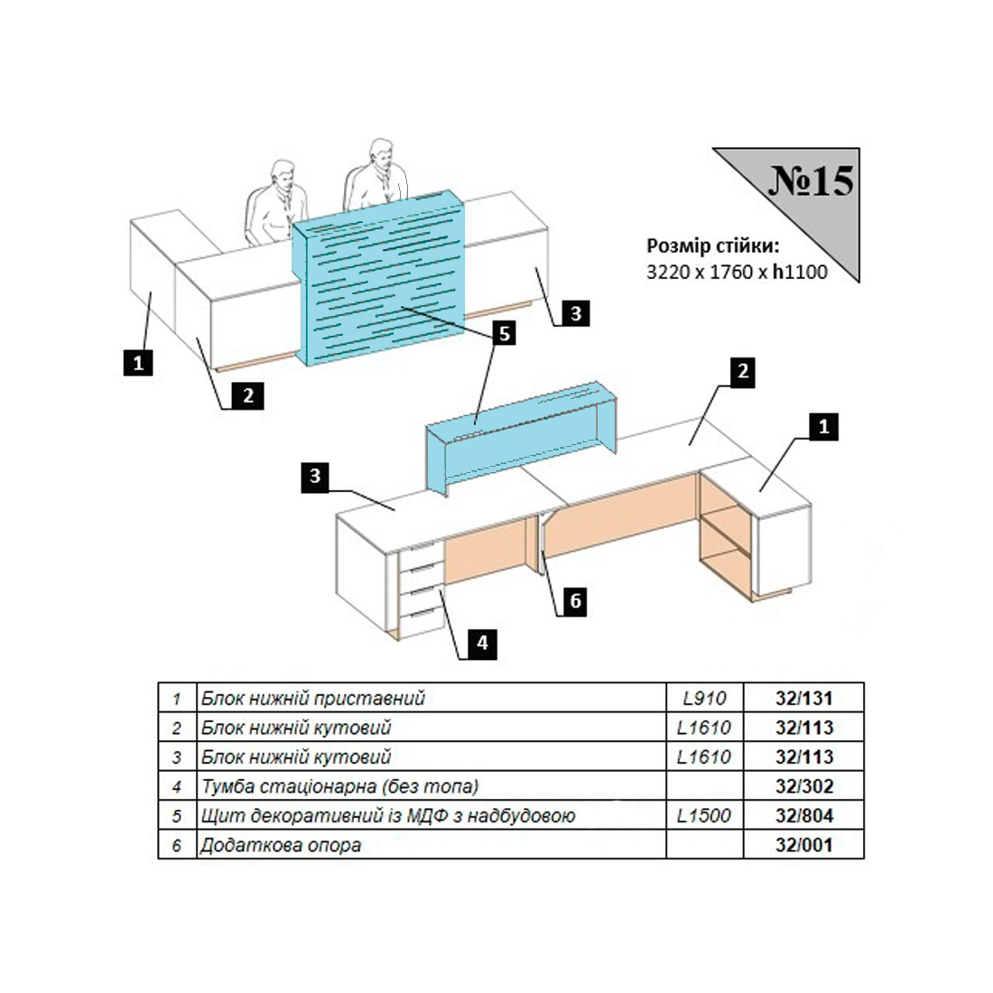 | Щит декоративный из МДФ с надстройкой | L1500*300*1150h | 32/804 | 1 |
