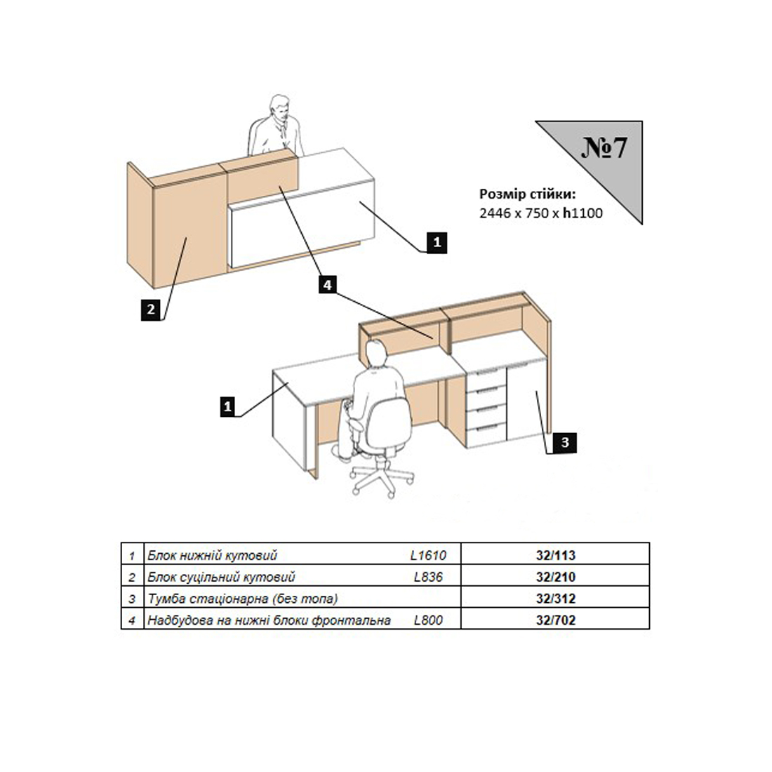 | Блок сплошной угловой | L836*640*1100h | 32/210 | 1 |