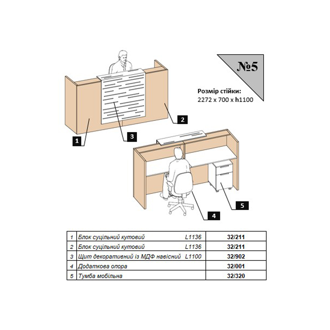 | Блок сплошной угловой | L1136*640*1100h | 32/211 | 2 |