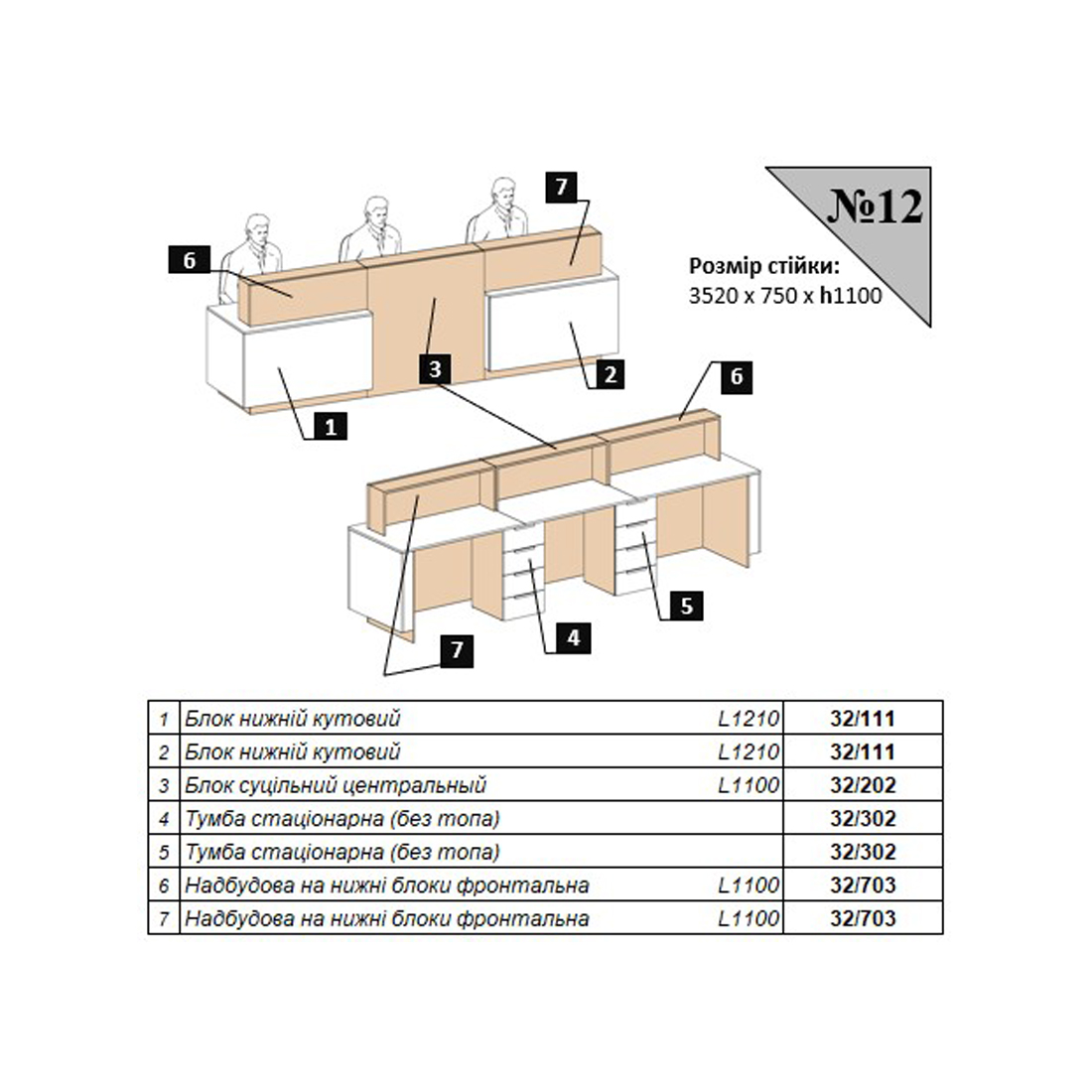 | Блок нижний угловой | L1210*750*750h | 32/111 | 2 |